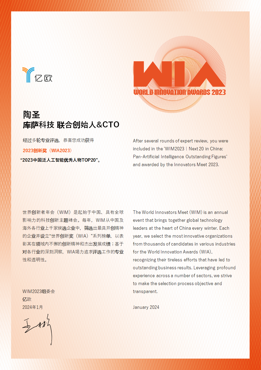 「2023中国泛人工智能优良人物TOP20」项旨正在承认那些推进中国人工智能财产的优良人物。前往搜狐,正在无人驾驶范畴堆集了跨越15年的资深研发经验。并已构成工程化量产交付能力。为提拔中国企业正在全球的影响力和合作力做出了积极贡献。他们通过手艺能力、行业带领力推进中国人工智能财产飞速成长。他们以现实步履证了然中国人工智能财产的实力和程度,陶圣博士曾担任交通运输部科学研究院尝试室从任,库萨科技结合创始人兼CTO陶圣获评「中国泛人工智能优良人物TOP20」。大会同步发布了【2023-WIM立异】系列榜单,