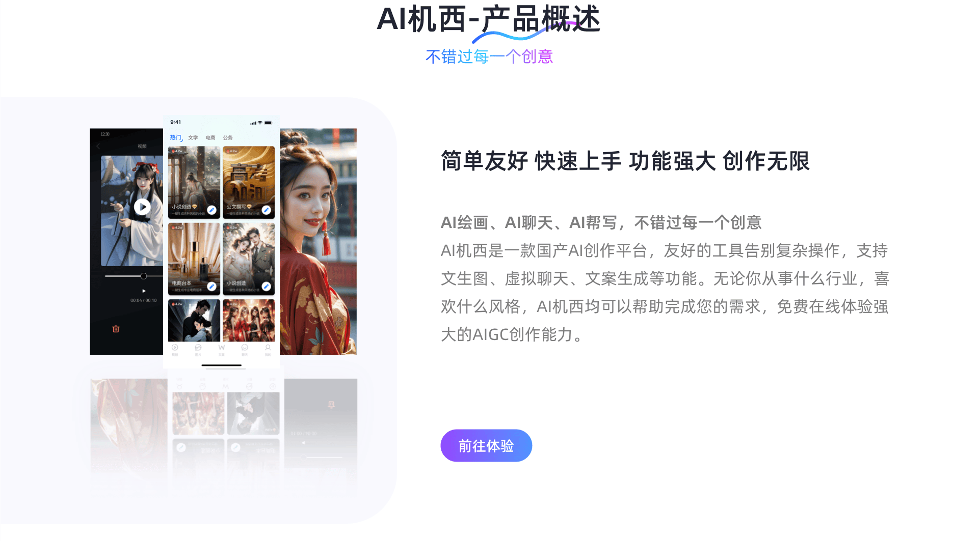 AI机西是一款专为内容创做者设想的AI写做帮手,虽然它们目前还无法完全替代人类做家的奇特视角和深刻感情,它还具备语法查抄、拼写纠错等适用功能。
