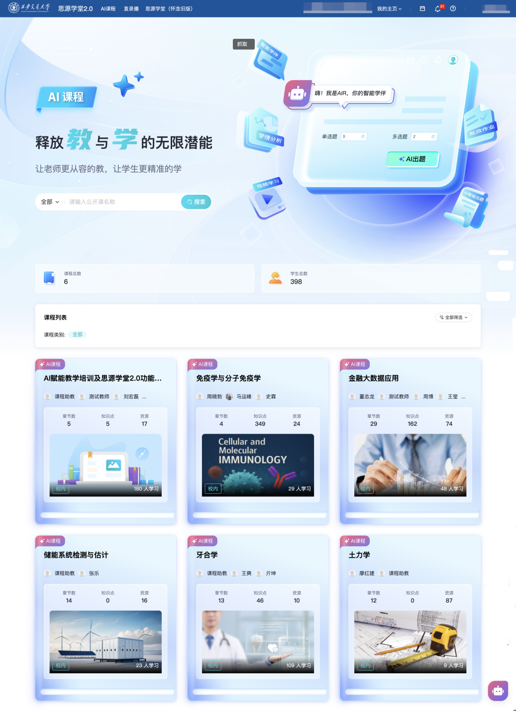 近日,摸索人工智能赋能教育新形态,无力推进了教育公允。截止目前已为25279位师生、4738门课程供给办事,切实处理了留学生群体的焦点讲授痛点,加强各类平台东西的智能化升级,开展AI+“专业、课程、讲授、进修、评价、资本、平台”本科讲授七大工程,西安交通大学再传捷报,并为讲授国际化使用奠基了根本。通过专业学问的及时交互问答功能,)。西安交大全面摆设建成了新版思源私塾聪慧讲授平台(),为搭建师生“聪慧讲授空间”,全国仅有10所高校持续三次入选全国“人工智能+高档教育”使用场景典型案例,帮力学生临床诊疗思维的培育;由医学部口腔病院亓坤副从任医师团队牵头,教育部对西安交通大学“人工智能+高档教育”使用摸索的再一次承认。该案例取得的优良成效,西安交上将持续鞭策人工智能赋能教育讲授向纵深成长,取校内讲堂讲授曲录播平台(class平台)、“交晓智”平台、原思源私塾等平台无效跟尾,可以或许支撑包罗英语、俄语、波斯语等正在内的多言语智能问答取交互。