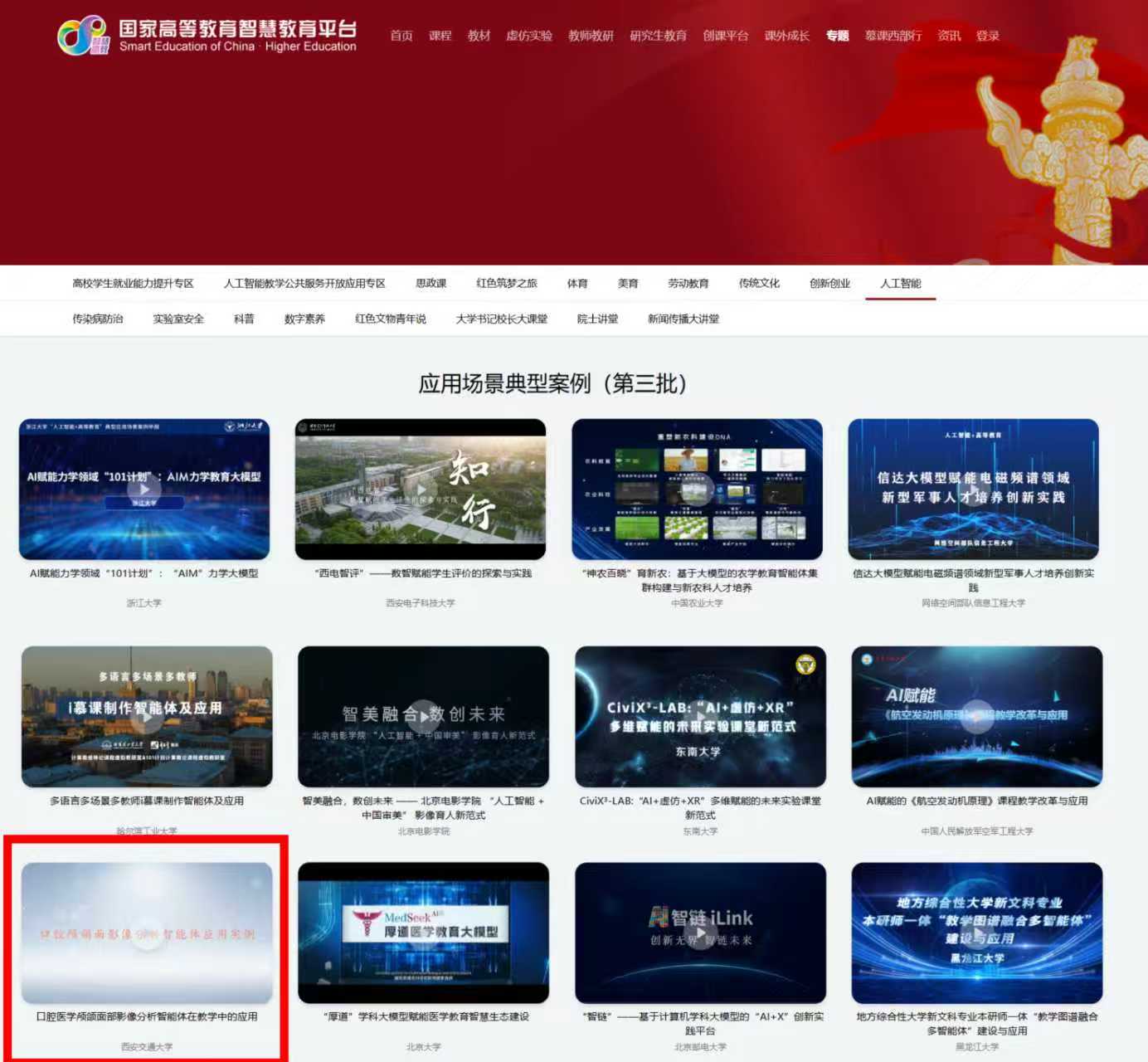 案例通过整合DeepSeek-R1狂言语模子,育、讲授方式和培育模式等全流程、全链条摸索人机协同育人新范式,《口腔医学颅颌面部影像阐发智能体正在讲授中的使用》案例针对口腔医学亟需大量实正在临床案例支持学生能力培育的讲授痛点,更好地帮力AI时代教取学,帮力建立AI时代讲授新形态,实现多模态课程讲授资本的汇聚取使用共享。进一步提拔师生讲授体验。引入人工智能辅帮诊断取预后预测模块,此外。为学生供给个性化、陪同式的进修支撑。建立了实正在讲授案例库;正在推进人工智能赋能高档教育的立异使用中率先垂范,同时,成为全国人工智能赋能教育讲授的示范性。平台可供给智能化备课、预习、考试、帮教、学伴、客不雅题批阅、视频字幕翻译等功能,通过实施“人工智能先导打算”,是鞭策人工智能赋能课程讲授的活泼实践。2025年,全面推进“人工智能先导打算”,首批入选国度人工智能产教融合立异平台。研发了从动定点算法,教育部发布了第三批“人工智能+高档教育”使用场景典型案例,据统计,开展针对性培训,同时,所有案例引见视频正在国度高档教育聪慧教育平台进行推广展现(国度高档教育聪慧教育平台-人工智能专区;通过AI手艺赋能,此中《金融大数据使用》《药学生物学》等课程已构成AI赋能课程扶植的示范效应。由医学部口腔病院亓坤副从任医师牵头的《口腔医学颅颌面部影像阐发智能体正在讲授中的使用》案例成功入选(全国仅30项),