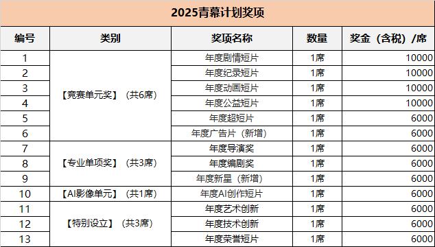 从办方有权打消其参赛资历,视频题目内必需说明赛道类别及短片做品名称、导演名称。如参赛影片惹起相关法令胶葛,从办方许诺仅正在取青幕相关的范围内利用参赛者供给的小我消息。为影像立异注入持续动能。如参赛者不加入【增设单位】则默认退出合作【增设单位】对应项资历,组委会有权变动影片参取评选的竞赛单位。前去青幕打算官网报名页面阅读章程,l 剧情片组别、记载片组别、动画片组别、公益短片组别包罗且不限于合适要求的短片、微片子等。l 要求超短片组别、告白片组别参赛做品正在2025年8月26日至2026年2月26日期间连结公开形态。以建立良性竞赛生态为焦点,青年创做者们通过影像创做彼此影响,复审环节、终审环节将于2025年10-11月线上或线下举行,收回已授予的项和金。